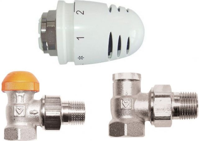 Täielik radiaatori termostaadikomplekt nurkühendusega paigalduseks.